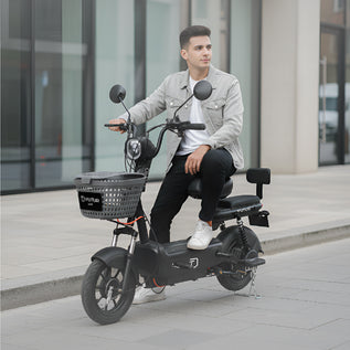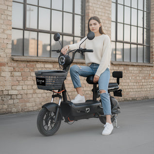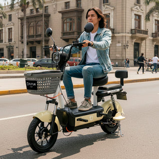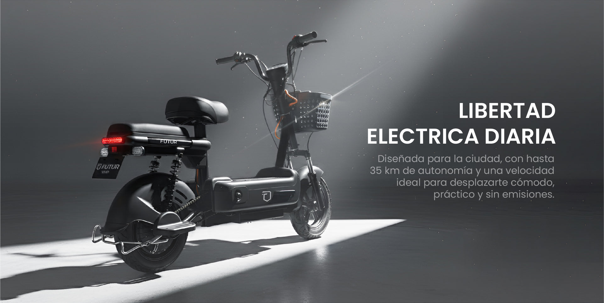 La ZYRO es una bicimoto eléctrica ligera, funcional y compacta, diseñada para la movilidad urbana diaria. Con asiento doble y canastilla delantera, ofrece comodidad, practicidad y eficiencia en cada recorrido por la ciudad.